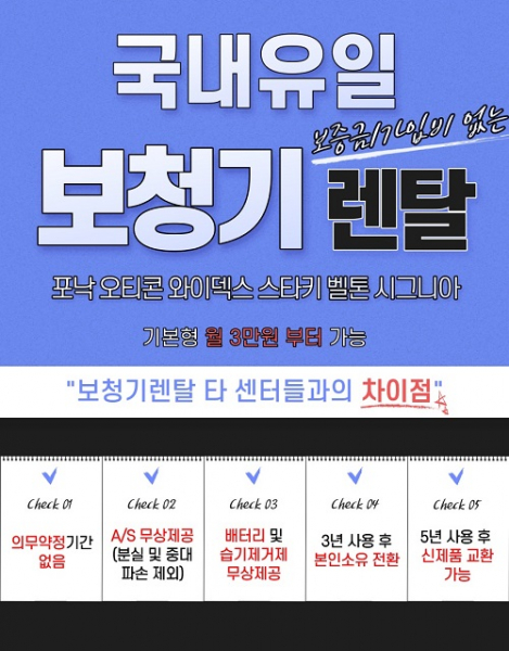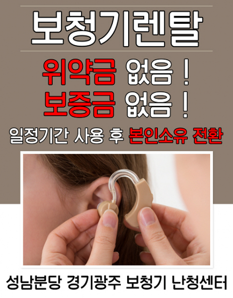 오티콘보청기 경기광주점, 벨톤보청기 성남분당지사에서 진행하는 렌탈서비스는 가입비 및 보증금 없이 월 렌탈비(월3만원부터)만 납부하면 렌탈기간에 배터리 무상제공에 보청기 고장시 전액 무상수리가 되며 사용 중 보청기 업그레이드 또한 가능하기 때문에 보청기 렌탈 후 신제품이 나오면 변경도 쉽다.