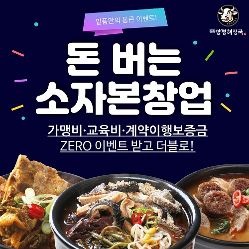 [이코노믹리뷰=전진혁 기자] 지난해에 이어 올해도 코로나 19 상황이 지속되면서 위험부담이 적은 소자본 1인 창업 아이템으로 요즘 뜨는 창업에 대한 관심이 고조되고 있다. 이 가운데 국밥 프랜차이즈 ‘일품양평해장국’ 은 창업에 대한 진입장벽을 낮출 수 있는 소자본창업 지원 제도를 마련했다고 밝혔다.