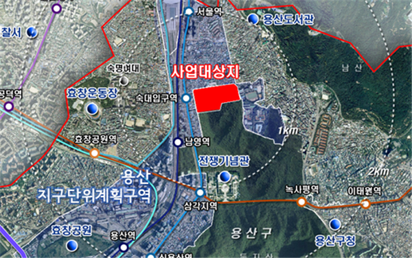당초 대사관 직원숙소부지로 사용하려던 구역 동측의 약 3만㎡의 부지는 용산공원으로 함께 조성될 예정이다. 지난 5월 체결된 한미 정부 간 부동산 교환 양해각서에 따라 국토부가 기부채납 받는 아세아아파트 일부와 교환되면서다.