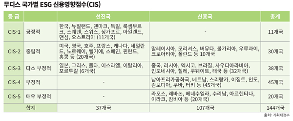 현대경제연구원은 “올해 1월 국제 신용평가사 무디스가 ESG평가 보고서를 발표했다”며 “한국은 ESG 관련 요소들이 국가신용등급을 결정하는데 긍정적인 영향을 미치는 1등급으로 평가했다”고 설명했다. 이에 “국내 기업과 국가가 나서 ESG관련 제도적 장치를 마련하는 등 적극적인 대응이 필요하다”고 강조했다.