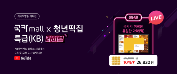 [이코노믹리뷰=정경진 기자] KB국민카드가 ‘청년떡집’과 인기상품 라이브 커버스 방송을 진행한다.