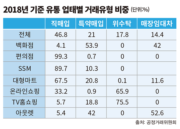 이 연구위원은 “유통기업과의 거래에서 특약매입으로 납품하는 비중이 증가할 때 납품업체의 매출액이 감소하는 경향을 보였다”며 “대형유통사들은 떨어낼 재고량이 적은 데다 직매입 비중이 낮아 할인폭을 키우기 어렵고 납품업체들은 특약매입 및 위수탁 계약에 가격 할인까지 겹쳐 매출이 늘어도 남는 게 없다”고 분석했다.