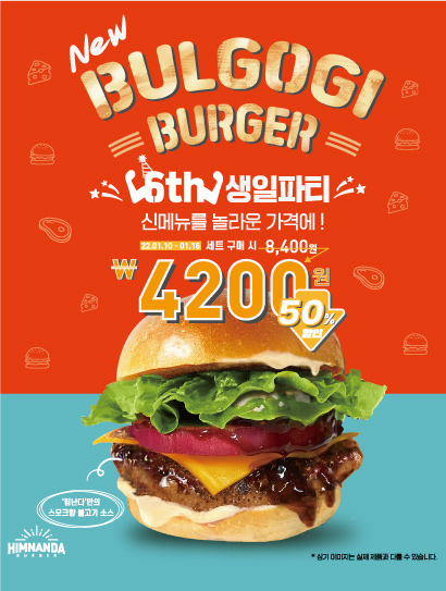 힘난다버거를 운영하는 ㈜힘난다는 2022년 새로운 출발, 코로나를 이기는 2022년 신년맞이 고객 힘난다 프로젝트의 일환으로 불고기버거 출시일에 맞춰 힘난다 6TH 프로모션을 진행한다.