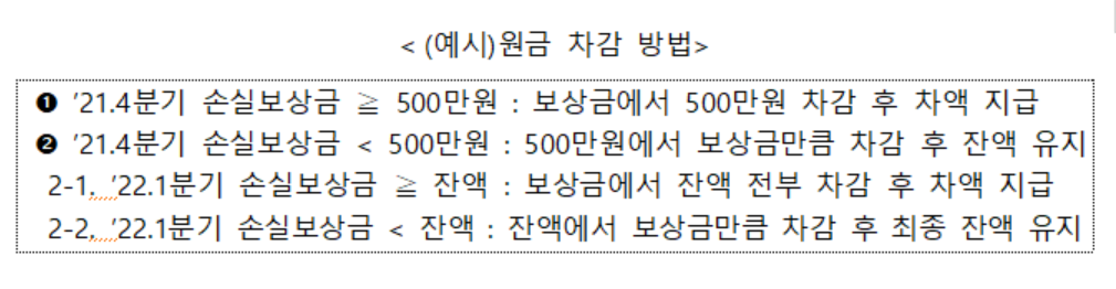 지난 2021년 4분기와 2022년 1분기 손실보상 확정시 선지급 원금 500만원에서 확정된 금액을 순차적으로 차감한다. 잔액이 남는 경우 5년 동안 상환하면 되고 중도상환 수수료도 없다.