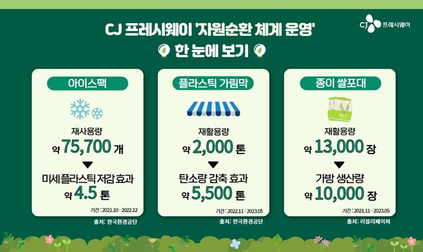 CJ프레시웨이 관계자는 “앞으로도 환경보전과 탄소중립 사회 실현을 위한 자원순환 체계를 선도적으로 도입해 지속 가능한 유통 환경을 만들어 나갈 것”이라고 말했다.