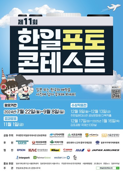 주대한민국일본국대사관 공보문화원이 '제11회 한일포토콘테스트'를 개최한다. 홈페이지에서 '한일 양국의 매력'을 테마로 촬영한 사진을 9월 8일까지 공모한다.