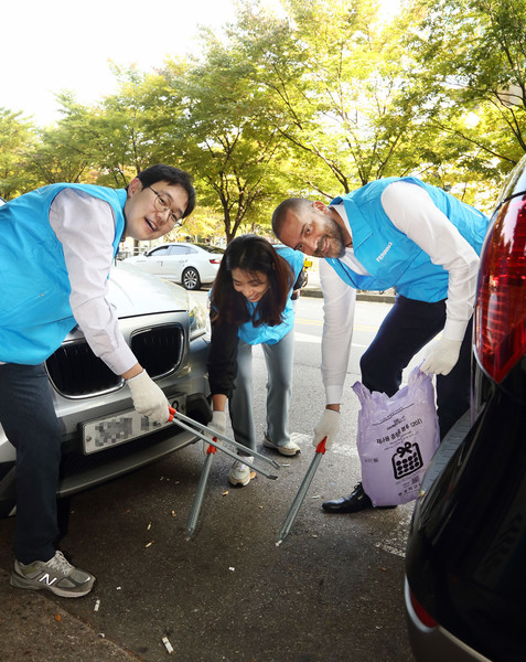 이들은 봉투와 장갑을 이용해 걷기 도중 발견한 쓰레기를 주워 담았다. 당일 외근 중인 직원들은 근무 지역에서 플로깅 참여를 권장했다.