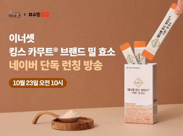 이너셋은 오는 23일 오전 10시부터 한 시간 동안 네이버 라이브방송을 통해 ‘이너셋 킹스카무트 브랜드밀 효소’를 선보인다. 구매자들에게 1만원 이상 구매 시 5% 쿠폰 증정, 5만원 이상 구매 시 수용성 커큐민(5만원 상당) 제품을 증정 등의 혜택을 제공한다.