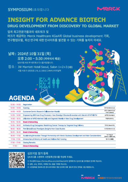 심포지엄에서는 제약·바이오 분야의 최신 연구 동향과 상업화 전략에 대한 심도 있는 논의가 진행될 예정이며, 머크의 글로벌 비즈니스 개발 및 협업 모델에 대한 인사이트와 업계 전문가들과의 네트워킹 기회가 제공된다.