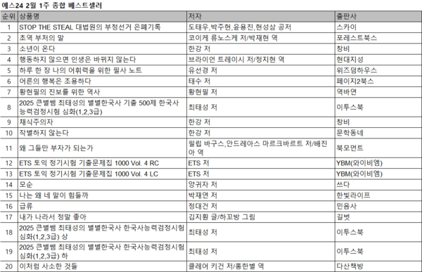 eBook 분야에서는 방학 기간 수험서의 인기가 계속되며 <입이 트이는 영어 2025년 2월호>가 1위에 등극했다. <해리포터 1~7권(한글판)>은 2위에, <POWER ENGLISH 2025년 2월호>가 3위에 올랐다.