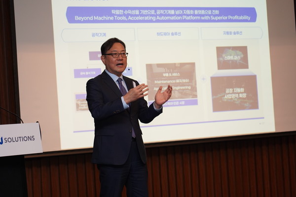 김 대표는 "보호 무역주의 및 공급망 재편기의 불확실성은 DN솔루션즈에겐 오히려 시장 점유율 확대 기회"라며 "반세기 동안 누적한 우리의 기술력과 글로벌 체질이 DN솔루션즈 시대에 더욱 강화한 혁신적이고 적극적인 경영과 투자를 바탕으로 세계 시장 점유율 확대를 견인하고 있다"고 말했다.