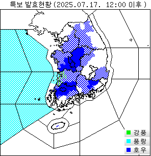 기상청이 7월 17일(목) 낮 12시를 기해 전국 7개 시 · 도에 호우경보를 발효했다. 충청과 전라, 경남권을 중심으로 시간당 30mm 안팎의 강한 비가 이어지고 있으며, 대전 · 세종 · 광주 등 광역도시도 경보 대상에 포함됐다.