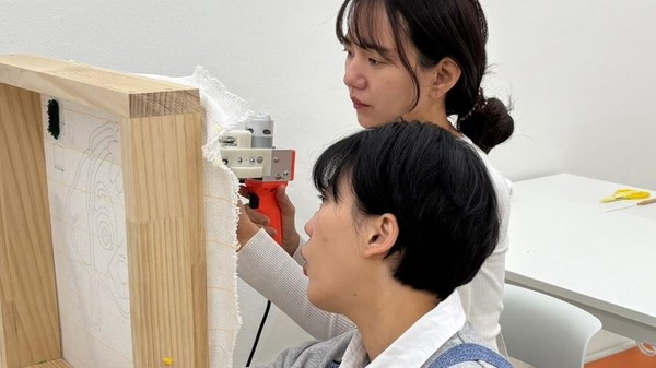 터프팅이란 총 모양의 도구로 천에 실을 쏘아 넣어 러그나 소품을 만드는 기법이다. 얀 공예란 실을 엮어 조명이나 생활 소품을 완성하는 작업이다.
