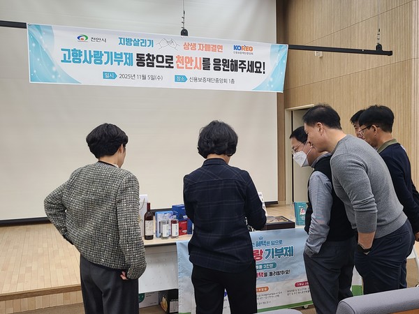 시는 이날 신보중앙회를 방문해 고향사랑기부제를 홍보하고 현장 기부자들에게 추가 답례품을 제공했다. 앞서 신용보증재단중앙회도 지난달 천안흥타령춤축제를 방문·관람하고 추석을 맞아 지역 농특산물인 성환 배 선물세트를 구입한 바 있다.