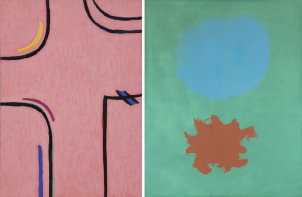 김환기에게 영감을 준 고틀리브의 회화는 폭발과 긴장이 특징이다. 대표적으로 ‘Burst(폭발)’ 연작은 위에는 원, 아래에는 폭발하는 덩어리로 구성됐다. ‘Imaginative Landscape(상상적 풍경)’ 시리즈는 하늘과 대지, 질서와 혼돈 등 상반된 개념의 경계를 강렬하고 단순한 색면으로 응축해 표현한 것이 특징이다.