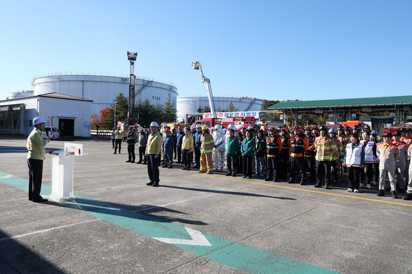 한국석유공사가 12일 동해 석유비축기지에서 기관장 주재로 '2025년 재난대비 상시훈련'을 실시했다. 재난 발생시 대응능력을 제고하고 유관기관과의 협업체계를 점검하기 위해 동해시, 동해소방서, 동해경찰서 등 16개 기관과 합동으로 이번 훈련을 실시했다.