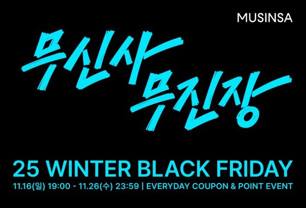 무신사가 연간 최대 규모 온·오프라인 할인 캠페인 ‘무신사 무진장 25 겨울 블랙프라이데이’(이하 ‘무신사 무진장 겨울 블프’)를 오는 16일부터 11일동안 진행한다고 14일 밝혔다. 국내 디자이너 브랜드부터 글로벌 업체까지 4500여 개 브랜드가 참가하여 60만 개 이상의 다채로운 상품을 ‘역대급’ 할인 혜택으로 선보인다.