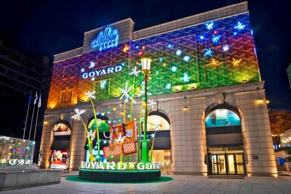 이스트 외벽은 고야드의 시그니처 패턴인 ‘고야딘(Goyardine)’을 입혔다. 크리스마스 분위기가 물씬 풍기는 다양한 장식과 조형물이 조화를 이룬다. 특히, 프랑스 파리 방돔 광장을 연상시키는 가로등이 어우러져, 마치 축제가 열린 유럽 광장에 와 있는 듯한 분위기를 선사한다.