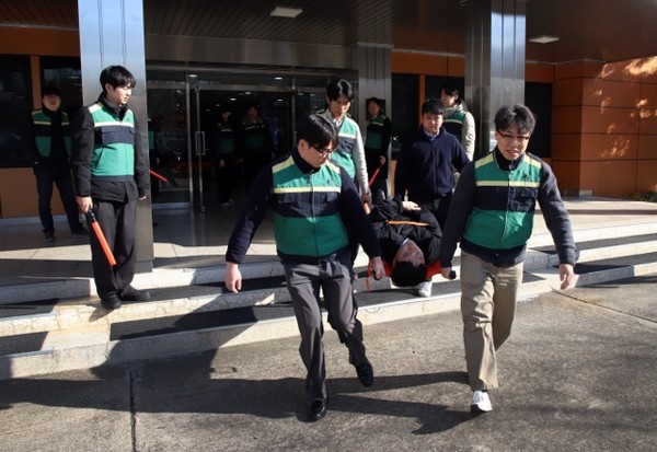 ▲지진 초기 대응 및 전파 절차 ▲대피 훈련 ▲환자 구조 ▲화재 진압 순으로 진행됐다. 실제 상황을 가정해 전 직원이 신속하고 질서 있게 대피할 수 있도록 시나리오 기반으로 구성했으며 대피 훈련 종료 후에는 임직원을 대상으로 소화기 사용법 교육도 실시했다.