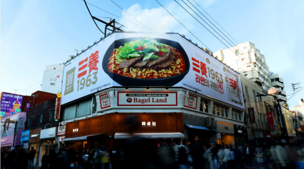 또한 이번 캠페인은 ‘삼양1963’의 핵심 타겟층인 2030세대와 소통 강화를 위해 유동 인구가 많은 성수동 상권의 중심 구역에 광고를 배치했다. 삼양식품은 라면의 본질인 따뜻함을 내세운 옥외광고를 통해 브랜드 노출 효과를 제고하고, 2030세대와 접점을 확대한다는 계획이다.
