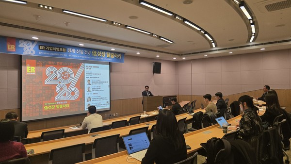 이코노믹리뷰가 20일 서울 여의도 FKI타워 루비홀에서 ‘기업 희망포럼 - 2026년 경제·산업 전망’을 연 가운데 현장에서 대내외적 경제 불확실성 속, 기업들의 생존 전략에 대한 심도 있는 논의가 필요하다는 주장이 나왔다.