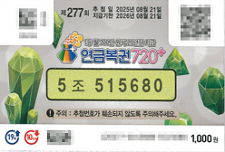 연금복권720+ 277회차 1등 1매와 2등 4매는 경기 부천시에서 나왔다. 해당 당첨자는 이번 추석 연휴에 그동안 모아둔 복권을 정리하다가 1등 사실을 알게 됐다고 말했다.