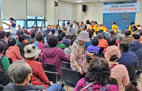 통영적십자병원은 지난 9월 17일 거제시 남부면 해금강 커뮤니티센터에서 지역주민 90여명을 대상으로 진료상담과 처방, 건강교육 등을 실시했다. 이달 6일에는 산양읍 사무소 강당에서 지역주민 150여명을 진료했으며, 이어 지난 15일에는 한산면 사무소 강당에서 지역주민 100여명을 대상으로 진료상담과 영양제·외용제 처방, 만성질환 예방관리 교육 등을 실시했다.