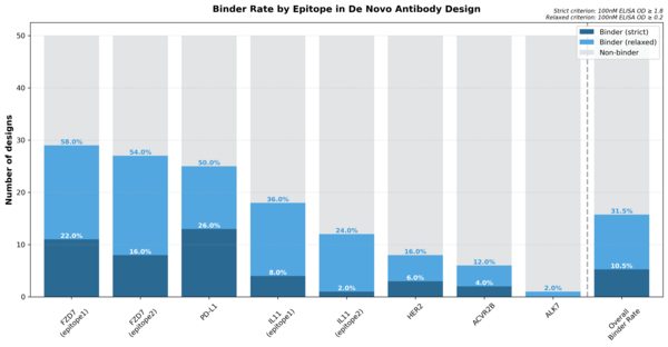 이번 연구는 이러한 기반 기술이 다음 단계로 고도화 했음을 명확히 보여준 성과다. 갤럭스는 광범위한 탐색 없이 단 50개의 정제된 설계만으로도 30% 이상이 치료 타깃에 정확히 결합하는 결과를 확인했다. 이는 전통적 실험 방법은 물론 기존 AI 접근법과 비교해도 수천 배에 달하는 고도화이자, 현재까지 보고된 다섯 그룹의 드노보 항체 설계 사례 중에서도 최상위권에 해당하는 성공률이다. 특히 이 중 다수는 별도의 최적화 없이도 약물 후보로 개발 가능한 수준의 결합력을 보여, 한 달 이내 설계와 검증을 완료해 약물 수준 항체 후보를 확보할 수 있는 새로운 항체 발굴 패러다임을 제시했다.
